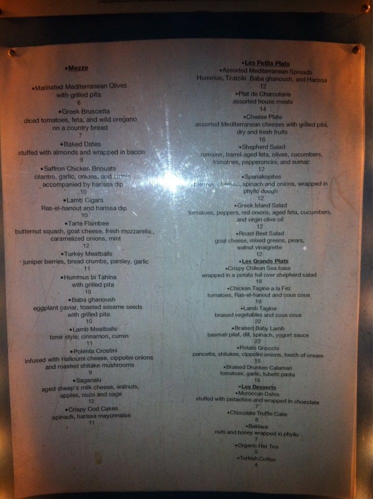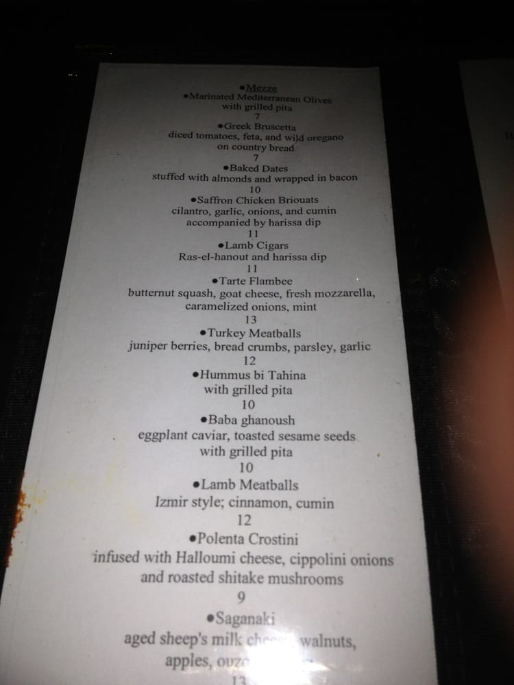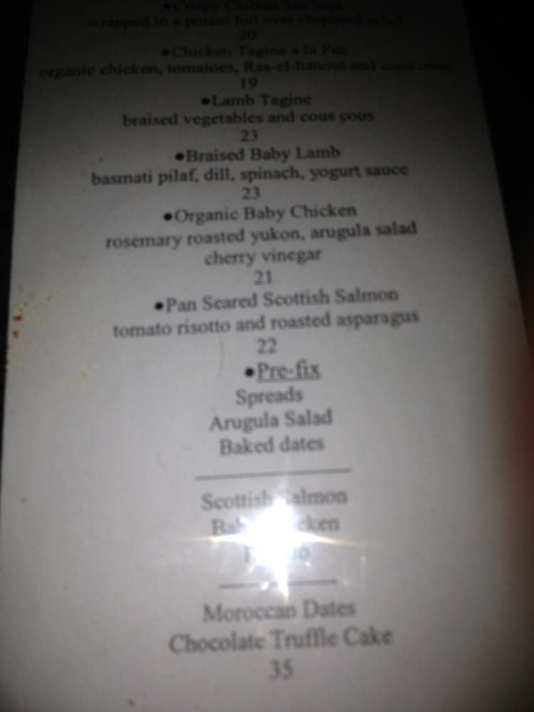diced lamb, onions, garlic, fresh mint, wrapped in feuille de brick, with housemade harissa